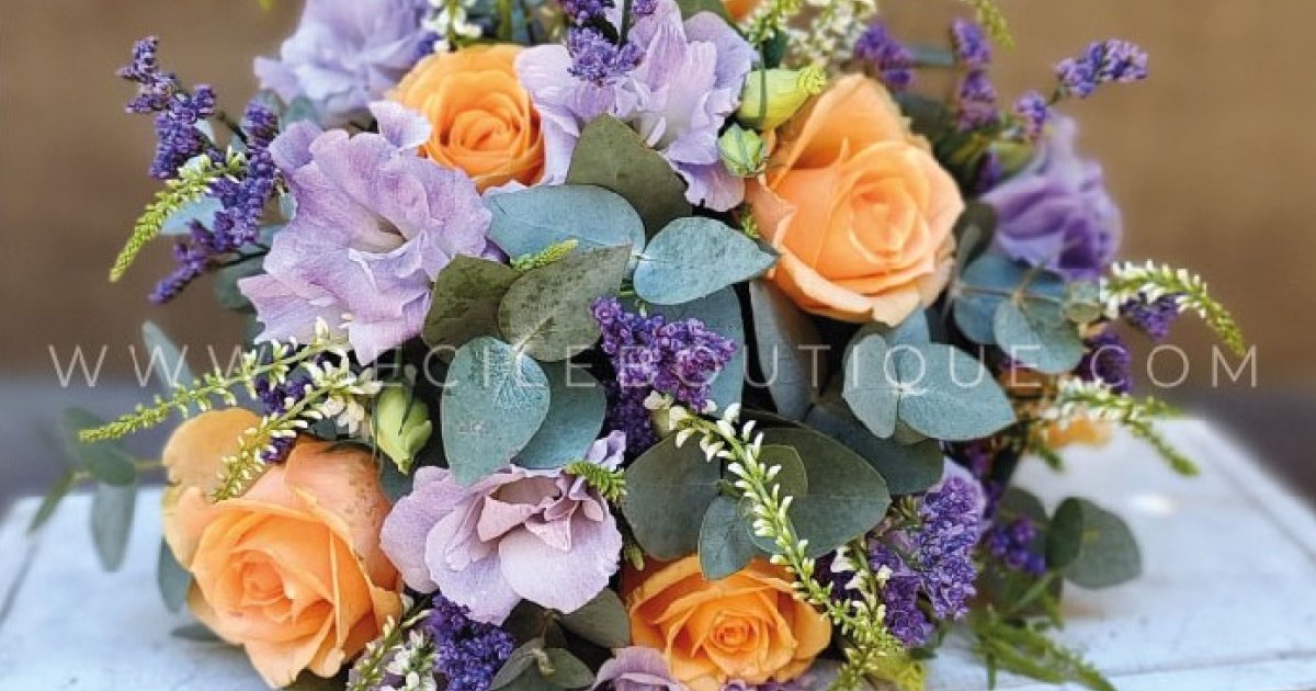 Aura” es un ramo en tonos salmón y lila, el cual transmite delicadeza, elegancia, bondad e inocencia, ideal para regalar en cualquier ocasión.