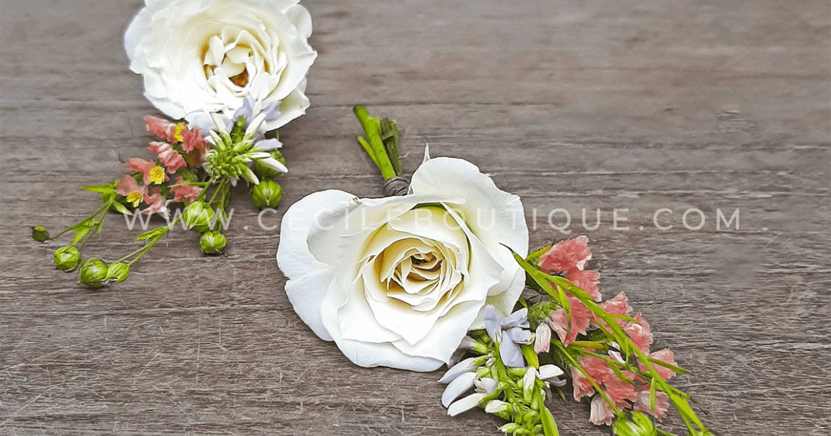 Los boutonniere son unos delicados y pequeños arreglos florales que sirven para embellecer los atuendos del novio y del padrino. “Primer amor” fue inspirado en aquellas parejas que se aman desde el primer instante en el que se vieron y que nunca tuvieron ojos para otra persona.