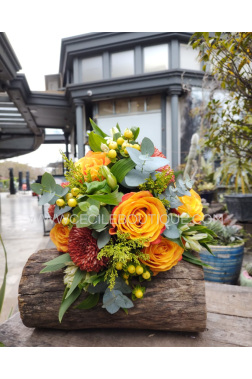 A vibrant arrangement with roses and flowers in warm tones that reflect the Argentine sunset. Perfec..