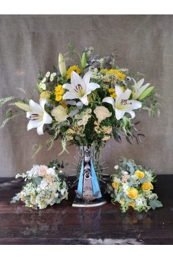 "Mary´s Refuge" , a set of three bouquets and one candle created to honor this holy woman who l..