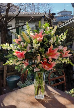 Carefully designed by our team of expert florists, "Heart Beats" transmits warmth and harmony through the whites of the Lilies and the pink. We think it´s and ideal gift for any ocassion.