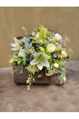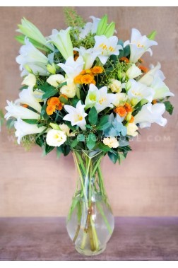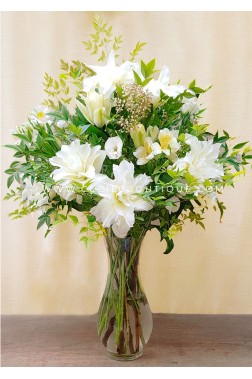 "Golden Years" is a unique floral arrangement, balancing the peace and tranquility that only white c..