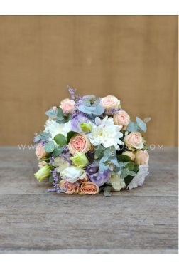 "Aura" is a bouquet in salmon and lilac tones, which conveys delicacy, elegance, kindness and innoce..