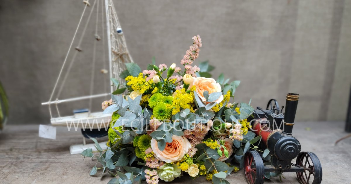 Dias Magicos contiene un ramo de flores, junto con un velero y un tren miniatura. El regalo ideal para revivir, transmitir y regalar aquella belleza brindada por aquellos años dorados.