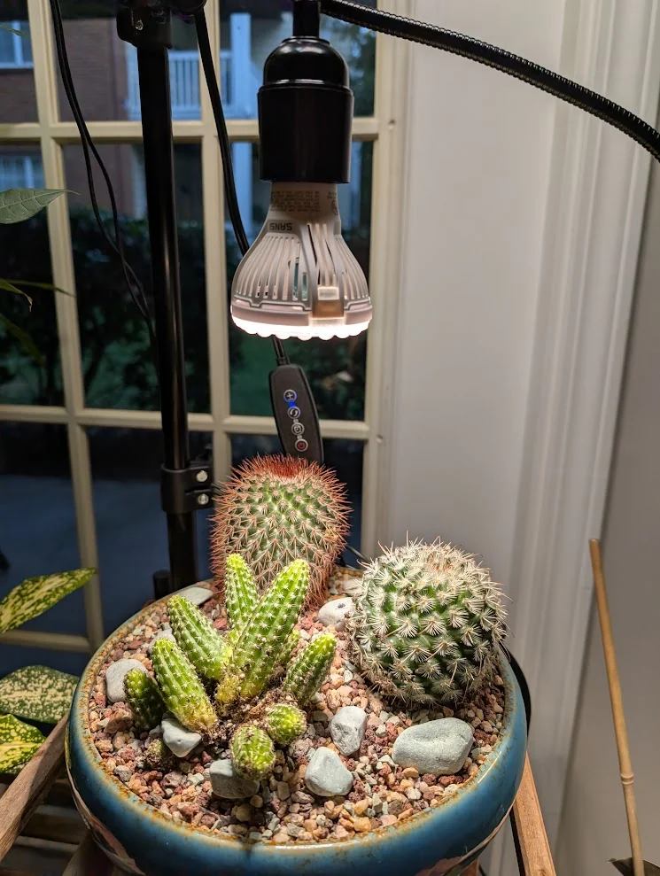 Si notás que tu cactus se estira, pierde grosor, se inclina hacia un lado o cambia su tono verde a uno más pálido, es señal de falta de luz. En estos casos, podés rotar la maceta cada una o dos semanas para que el crecimiento se mantenga parejo. Si vivís en un departamento con poca luz, una lámpara de cultivo (grow light) puede ser una excelente herramienta en meses de baja luminosidad.