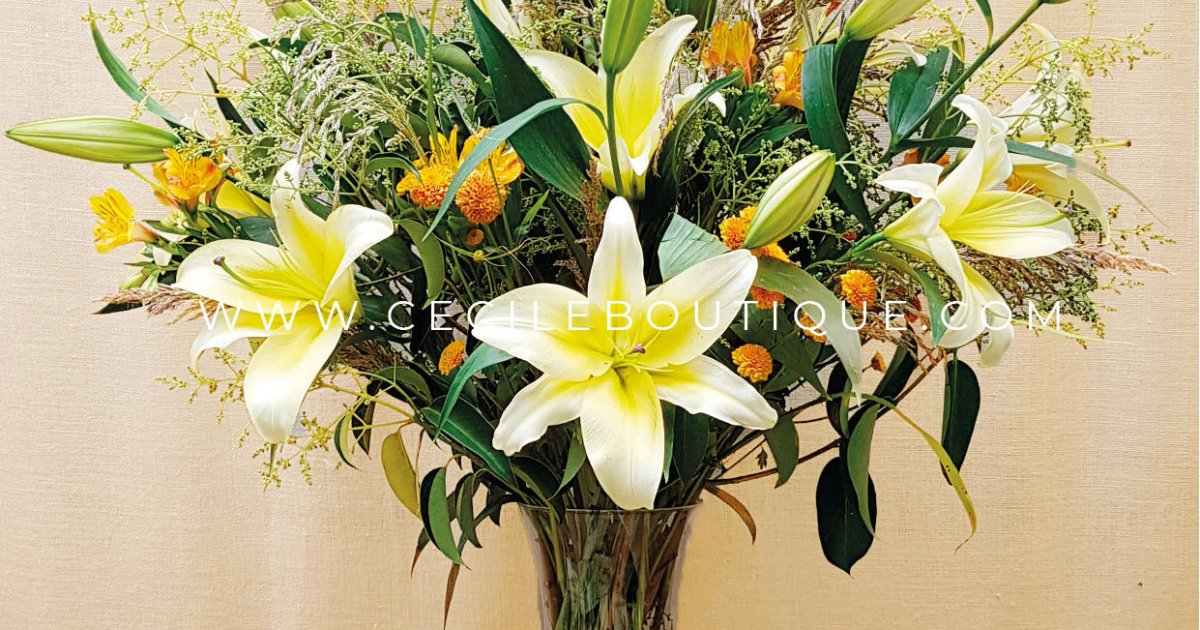El arte de este arreglo se logró gracias a la cuidadosa selección de nuestro equipo de floristas: Liliums, Lino, Azafrán, Laurentino y Cortadeiras.