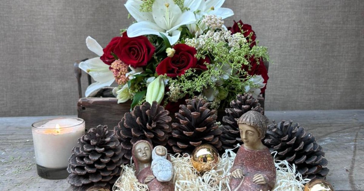 “Que tu Navidad brille” es un regalo con un bouquet de flores naturales que incluye una vela, pensado para llenar de luz, armonía y espíritu festivo cada rincón de estas fiestas. Los tonos del conjunto son rojos, blancos y verdes, una combinación clásica que transmite calidez, alegría y un encanto navideño único.