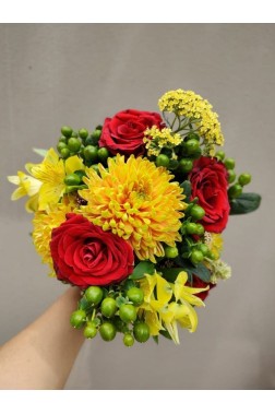 “Magia de Navidad” Una composición floral pensada para celebrar la magia de la Navidad con calidez, celebración, unión y buenos deseos, creando una atmósfera acogedora ideal para compartir momentos especiales. Este conjunto de arreglos combina la frescura de lilium blancos y amarillos, rosas blancas, alstroemerias rojas, crisantemos en tonos amarillo y verde, y delicadas flores de relleno, integradas con verdes naturales que aportan movimiento y armonía.