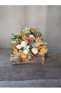 "Calidez" es un arreglo floral que captura la esencia cálida y natural del otoño con estilo rús..