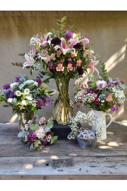 "Super dulce y romantico" este exclusivo conjunto floral que incluye un ramo grande, uno mediano y d..