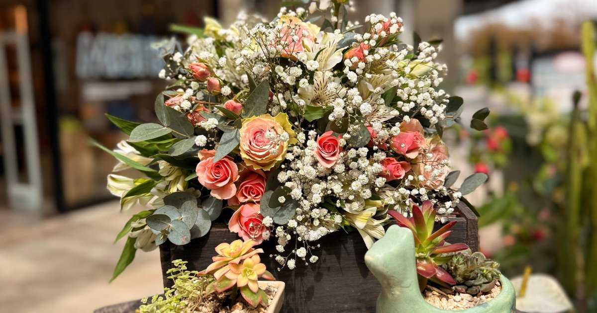 Las flores pueden variar según la estación y disponibilidad en el mercado, sin embargo, el concepto de "Encanto de mamá" está presente en todas sus versiones