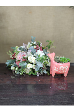 Incluye dos jardines de tamaño mediano y un jardin en maceta de llama. Podés personalizar este ramo sumando un elegante florero de vidrio, una caja de chocolates, blends premium de té & hierbas aromáticas, champagne, difusores, perfumes, jardines con diseño o coronas de flores. Cada elección transforma el regalo en una experiencia aún más significativa.