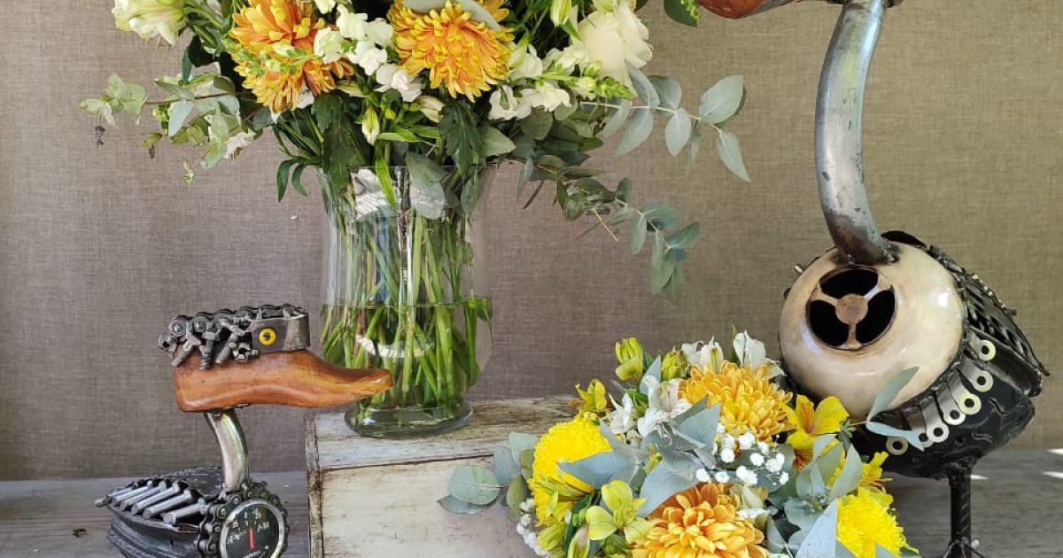 “Zambullida Dorada” es un regalo con un bouquet de flores naturales que incluye dos ramos, creado para celebrar la luz, la frescura y la alegría del verano. Su diseño combina armonía, movimiento y carácter, dando como resultado una propuesta original y expresiva.