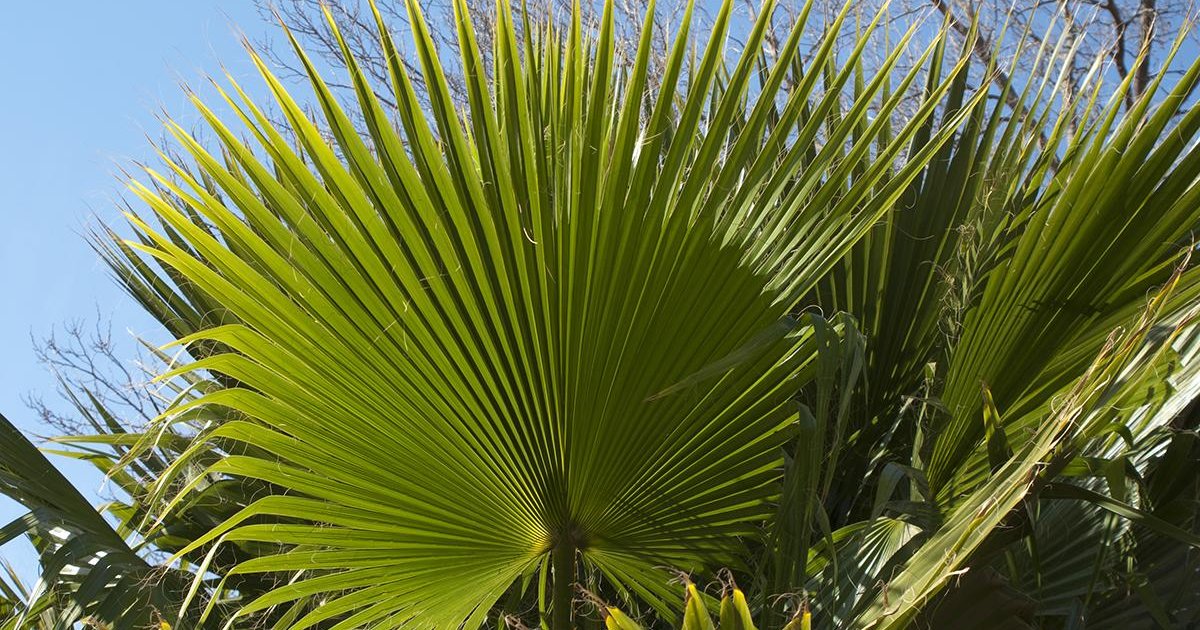 Hojas: Forma de abanico, verde brillante, 0,90-1,50 m de largo, con filamentos algodonosos en hojas jóvenes. Las hojas secas forman una falda densa.