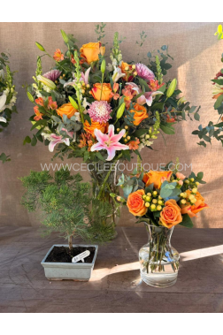 Una arreglo floral tan bibrante como tu pequeño solcito. Las flores pueden varia segun la disponi..