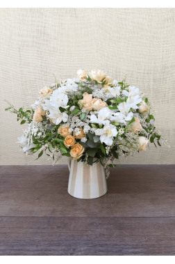 Pode conter: Rosas em spray, Mini crisântemos, Frésias e folhagens delicadas. As flores podem variar de acordo com a época e disponibilidade do mercado. Porém, o conceito por trás de “Amelie” está presente em todas as suas versões.
