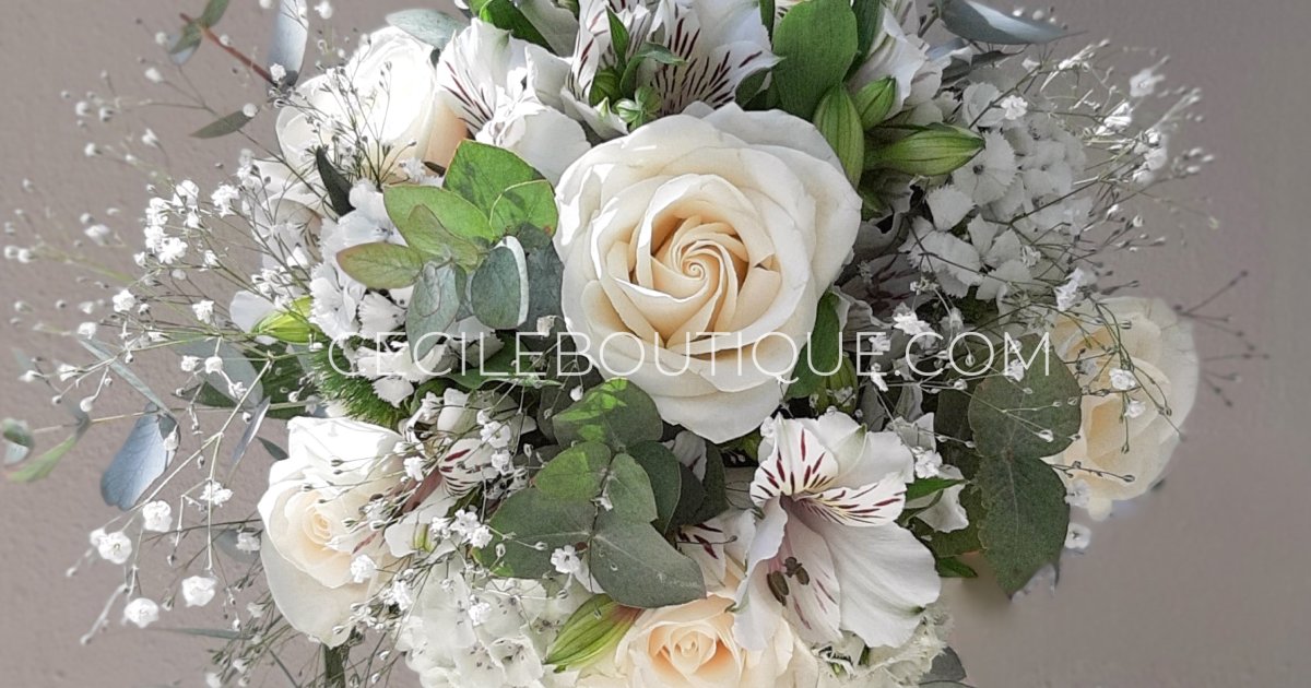 Um buquê de noiva delicado e romântico onde um branco rústico é a estrela, que é “Rosario”. Sua composição faz com que a noiva se destaque e atraia o olhar de todos.