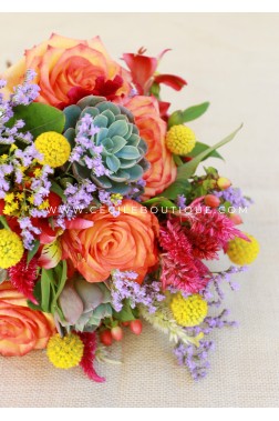 Este pequeno bouquet destaca-se pela sua cor lilás que simboliza criatividade e sabedoria. Est..