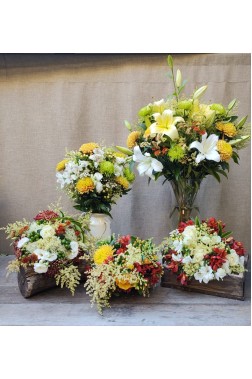 Una arreglo floral tan bibrante como tu pequeño solcito. Las flores pueden varia segun la disponi..