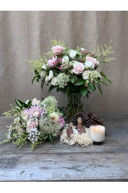 Um Novo Começo | Buquê de Flores é um delicado arranjo de flores naturais em tons de rosa e branco, ..