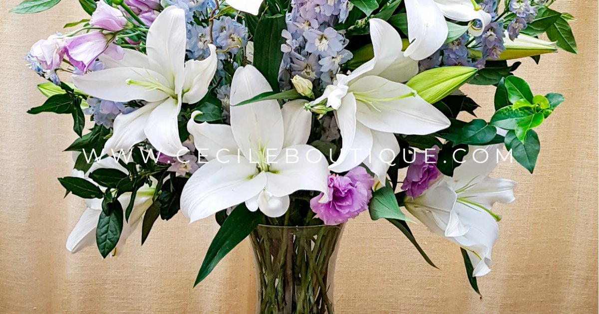 Puede contener: Liliums, Lisianthus, Delphinium, Sauce Eléctrico y follaje. Las flores pueden variar de acuerdo a la estación y a la disponibilidad en el mercado.