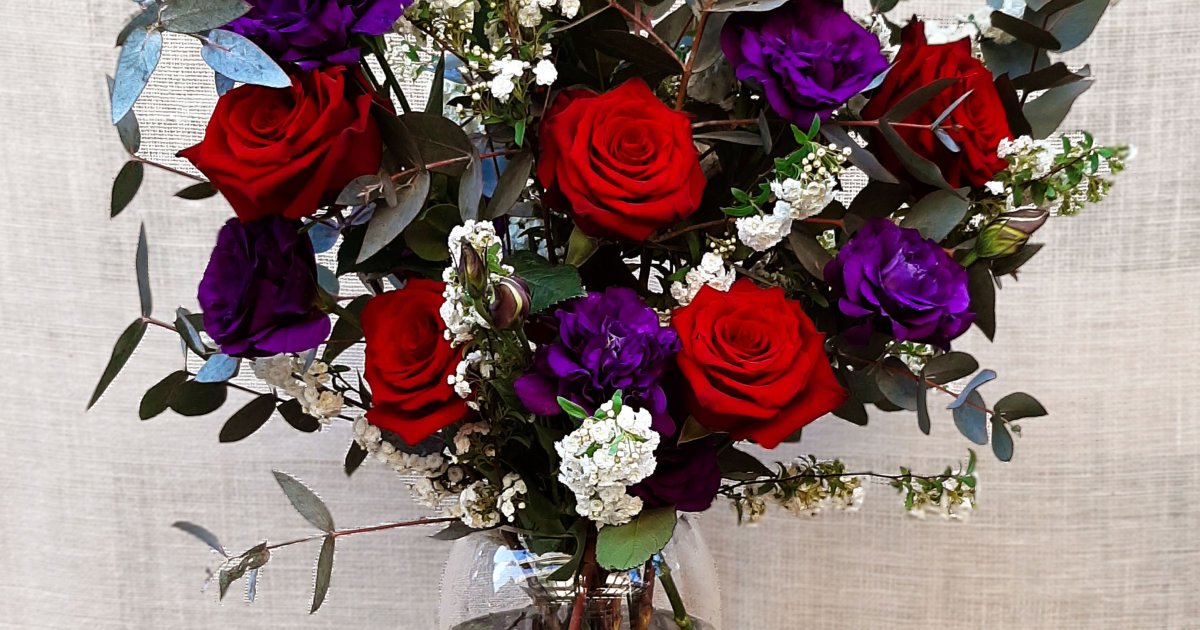 Pueden contener : Rosas rojas, Liliums Rojos, Alelies Blancos y violetas, Ornitogalum y un delicado follaje de eucalipto. Las flores pueden variar de acuerdo a la estación y disponibilidad en el mercado . Sin embargo, el concepto detrás de “ Reina de Fuego ” está presente en todas sus versiones.